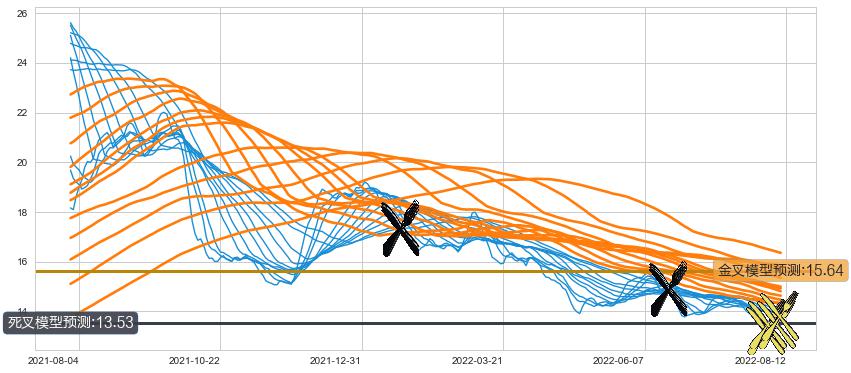 ➣ 30小时均线于(2022-06-17: 14.86)形成【死叉】基于【死叉历史模型】预测死叉后最低波谷价格: 13.62, 死叉后最低价格12.85,已经下跌超出预测最低波谷价格, 预期反弹