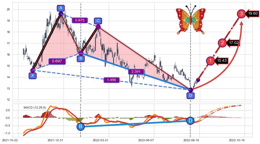 ➣ 已完成【蝴蝶】形态起点X: 2021-11-15, 终点D: 2022-08-02, 共175交易日