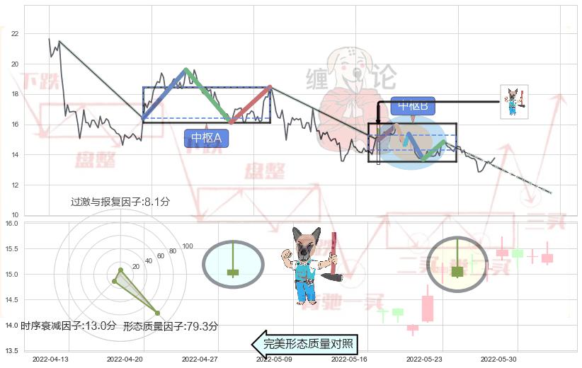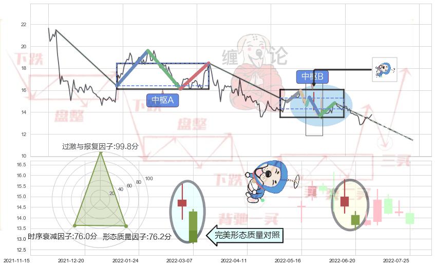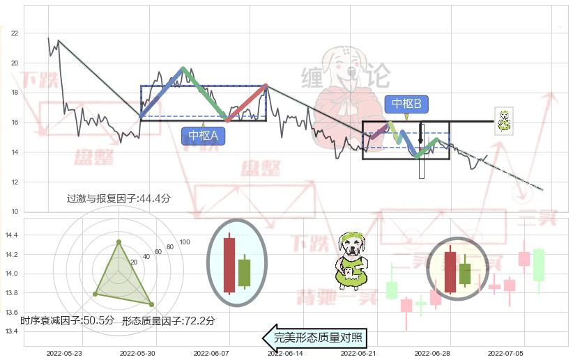 ➢ 下跌身怀六甲 🔜 缠论中枢点破位中枢B支撑下拉 综合量化分数:46.36 【中性】