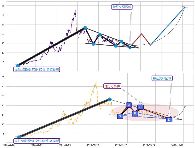 ➢ 谐波蝴蝶属【短级别信号事件】降楔型属【长级别信号事件】长短周期组合信号事件, 短长事件长度比32.71%