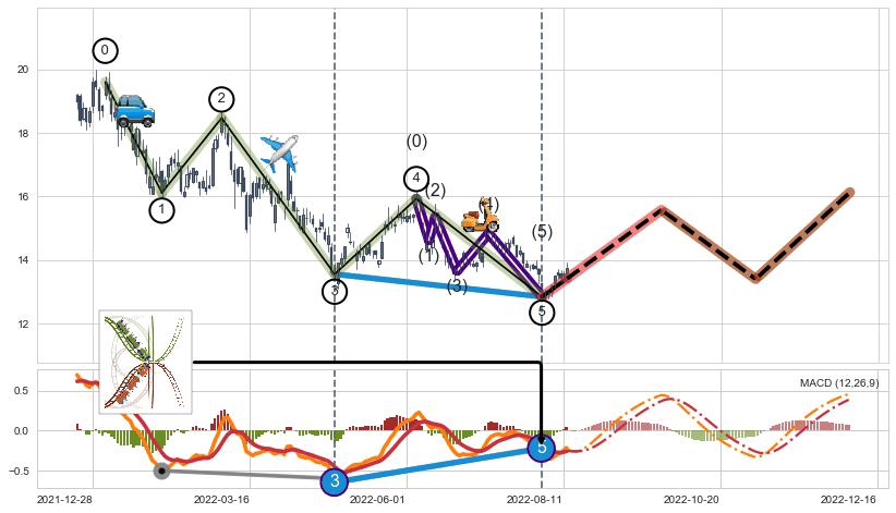➣ 波浪理论:猜想止跌 → 上涨 →【拐点】浪5已完成 → 大趋势均值回复