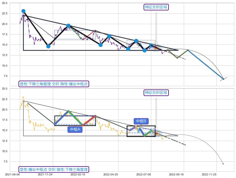 ➢ 下降三角整理与缠论中枢点信号事件周期长度级别相同,同周期信号事件