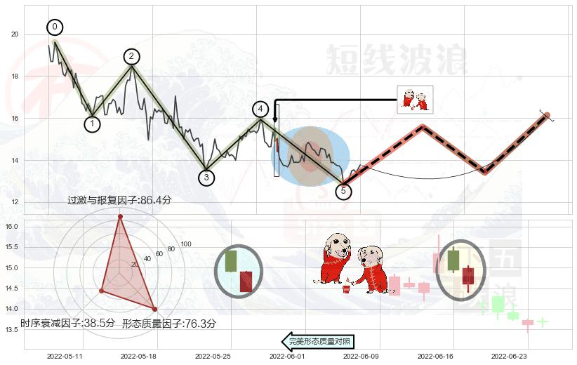 ➣ 锤头线(锤子线) + 波浪理论下跌浪:浪5反弹拐点信号叠加后【目标达成率】中等,【看多】信号叠加【存续影响中等】