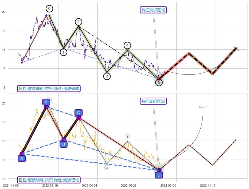 ➢ 波浪理论与谐波蝴蝶信号事件周期长度级别相同,同周期信号事件