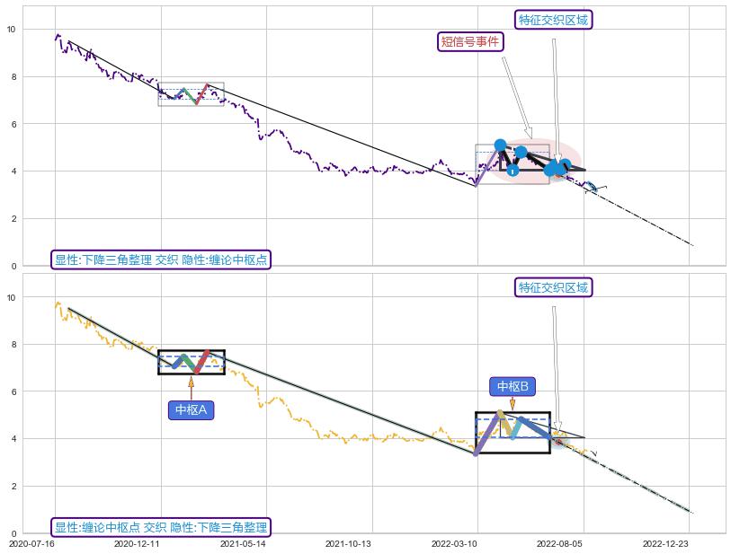➢ 下降三角整理属【短级别信号事件】缠论中枢点属【长级别信号事件】长短周期组合信号事件, 短长事件长度比13.18%