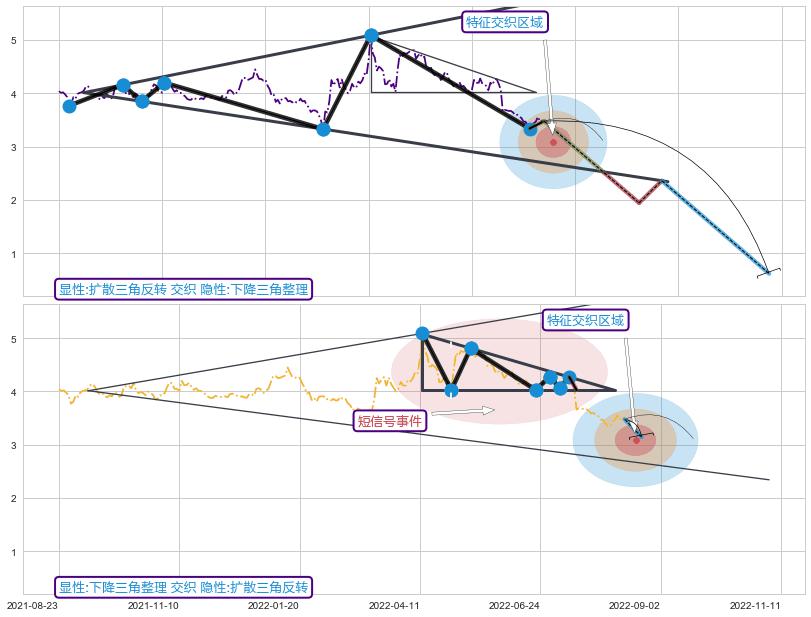 ➣ 【未确认突破,预测即将形成突破】【扩散】三角形反转起点:2021-08-30, 预测突破点:2022-09-22,形态共260交易日