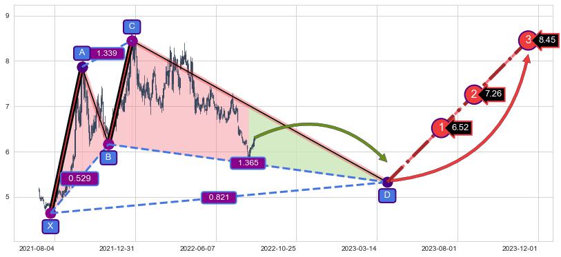 ➣ 未完成【赛福】形态起点X: 2021-07-28, 已到达C点: 2021-12-27, 预测最终D点: 2023-03-31, 共412交易日