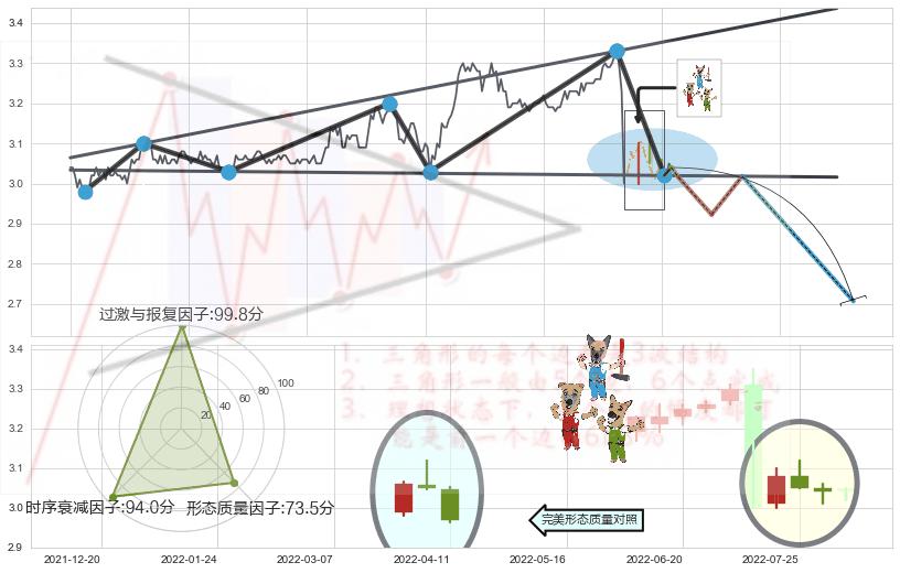 ➣ AI智能: 预测【大方向抉择→空方占优】扩散三角形反转向下突破,预测将在2022-08-17突破颈线