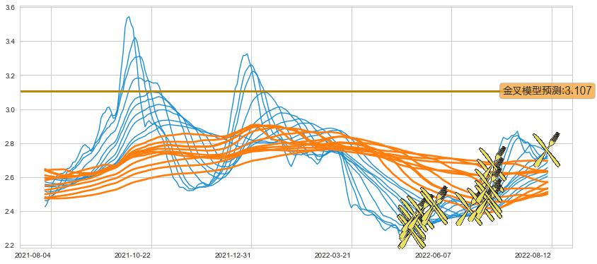 ➣ 21小时均线于(2022-08-11: 2.756)形成【金叉】基于【金叉历史模型】预测金叉后最高波峰价格: 3.107, 金叉后最高价格2.840,尚未达到预测最高波峰价格, 预期继续上涨