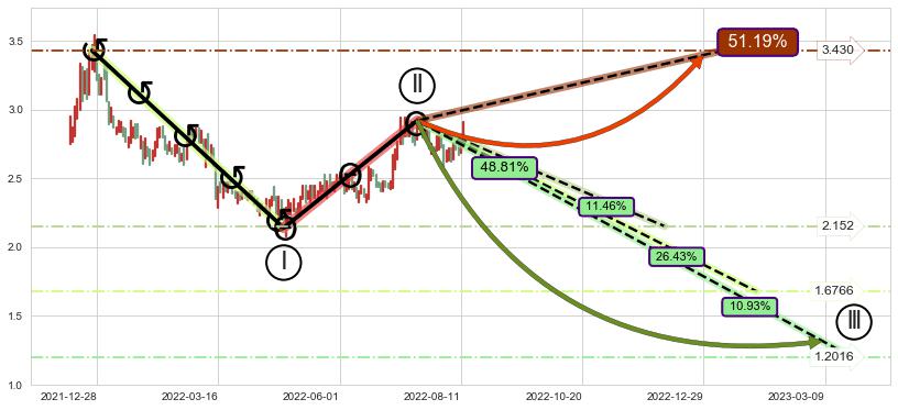 ➣ 循环浪继续向下【平均值】位置(2023-01-30, 1.6766),匹配聚类样本比例54.15%, 可能性概率26.43%