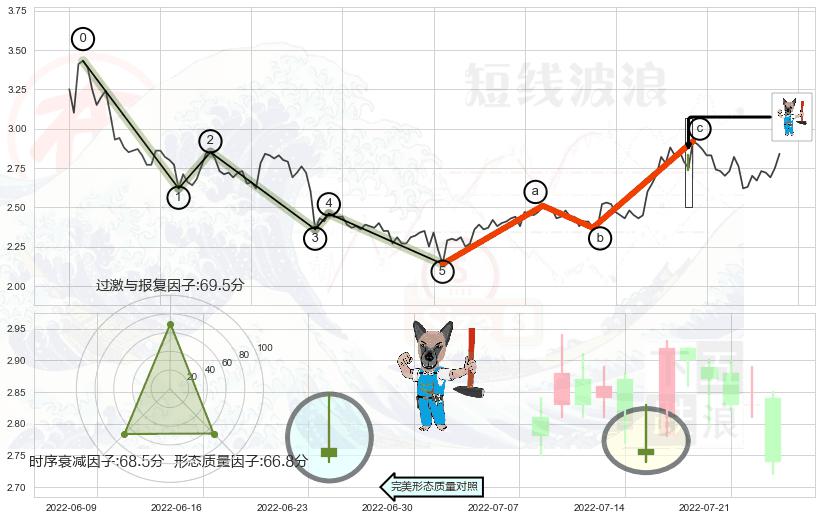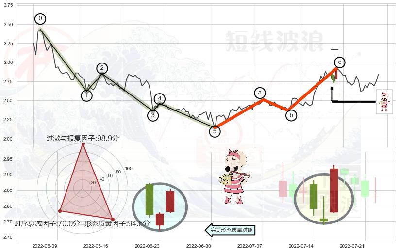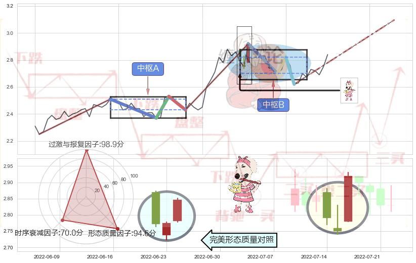 ➢ 🕰 价格走势在2022-07-12至2022-07-14期间形成两黑夹一红,残存影响值:-3.97