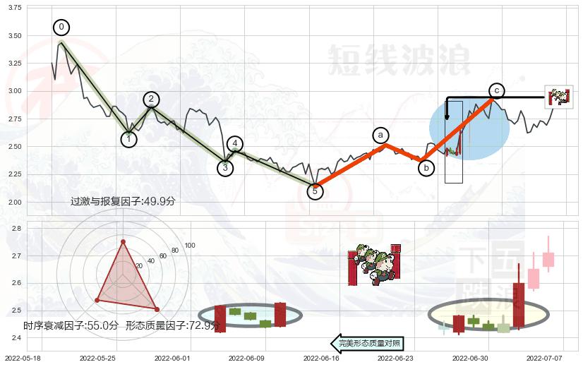 ➢ 🕰 价格走势在2022-06-28至2022-07-04期间形成上升三部曲(升势三鸦),残存影响值:2.96