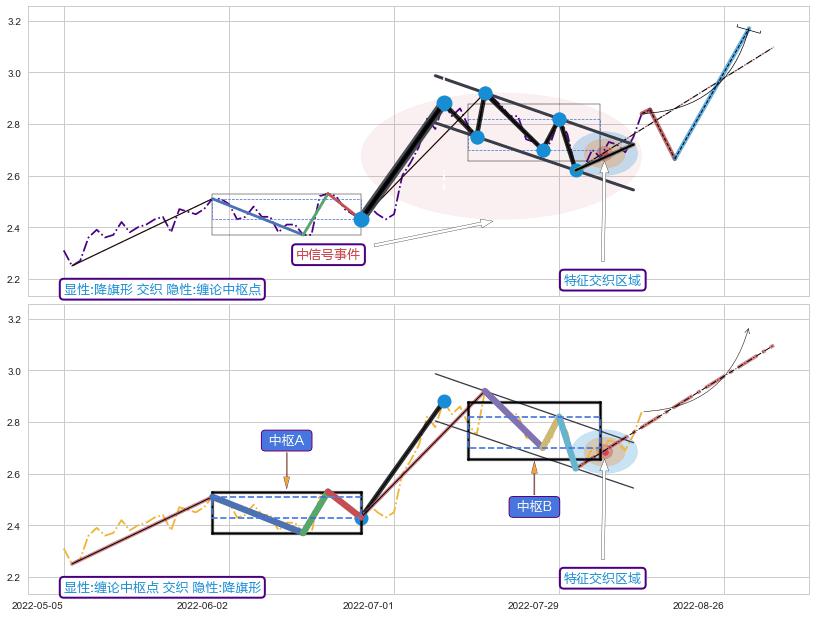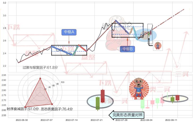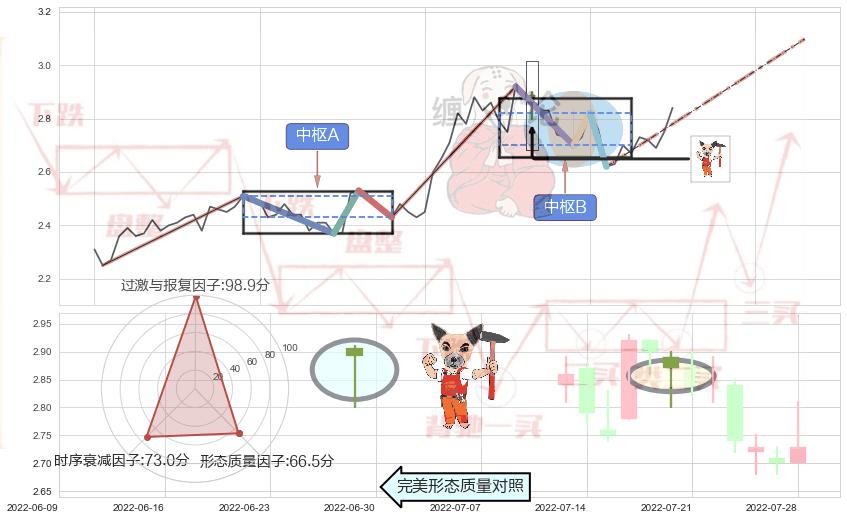 ➣ 【中枢B】:2022-07-18-2022-08-02,中枢由4笔构成,共12交易日, ZG=2.820, ZD=2.700
