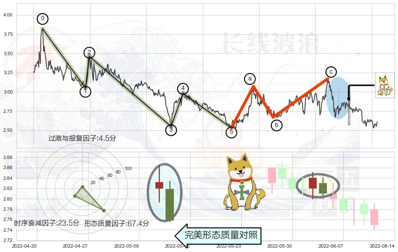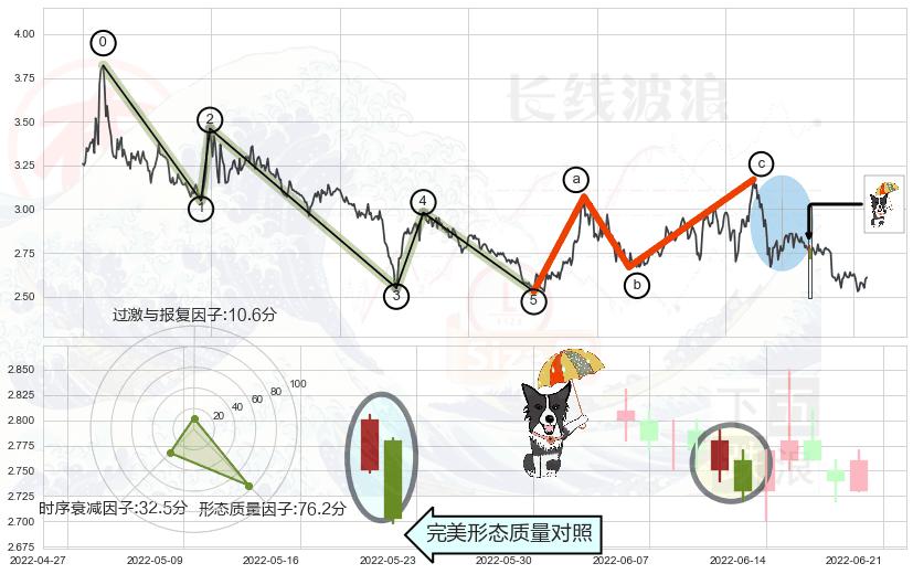 ➢ 下跌螺旋桨 + 波浪理论c点反弹终止反转下跌信号叠加后【信号初始稳固度】中等,【看空】信号叠加【可信度影响中等】