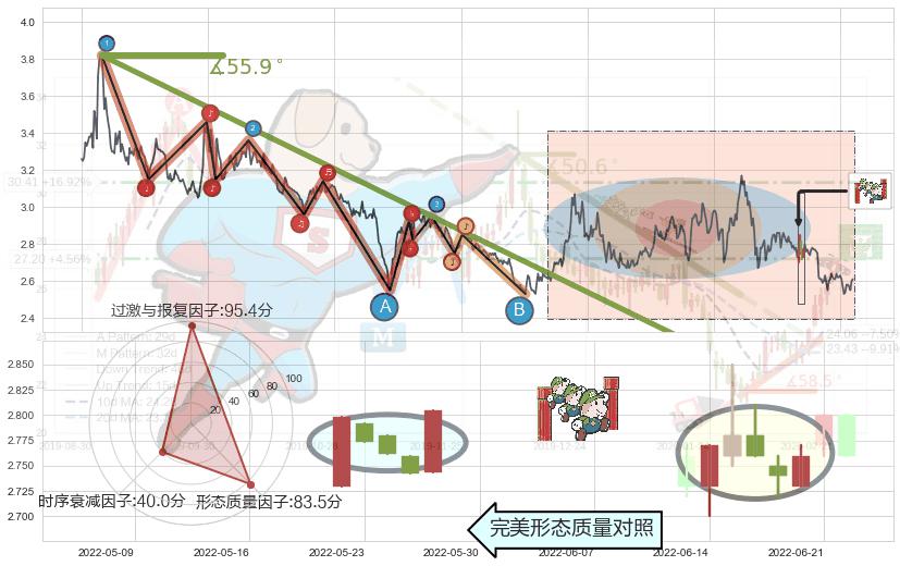 ➢ 顶部尽头线(下山虎) 🔜 波浪理论c点反弹终止反转下跌 综合量化分数:42.19 【偏空】