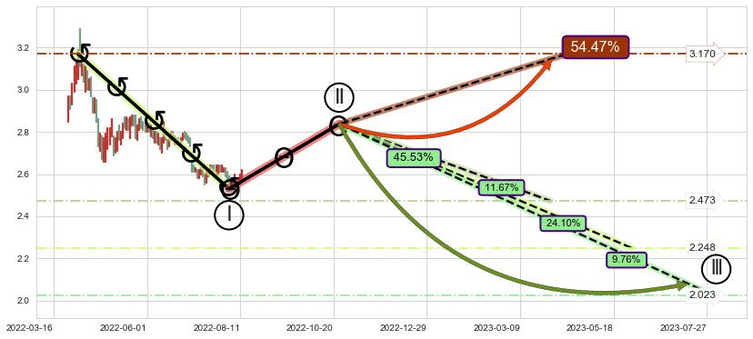 ➣ 循环浪继续向下【平均值】位置(2023-06-01, 2.248),匹配聚类样本比例52.93%, 可能性概率24.10%