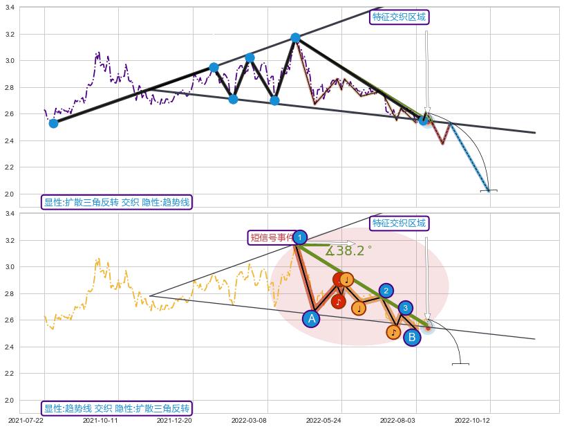 ➢ 趋势线属【短级别信号事件】扩散三角反转属【长级别信号事件】长短周期组合信号事件, 短长事件长度比34.52%