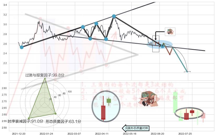 ➣ AI智能: 预测【大方向抉择→空方占优】扩散三角形反转向下突破,预测将在2022-08-18突破颈线