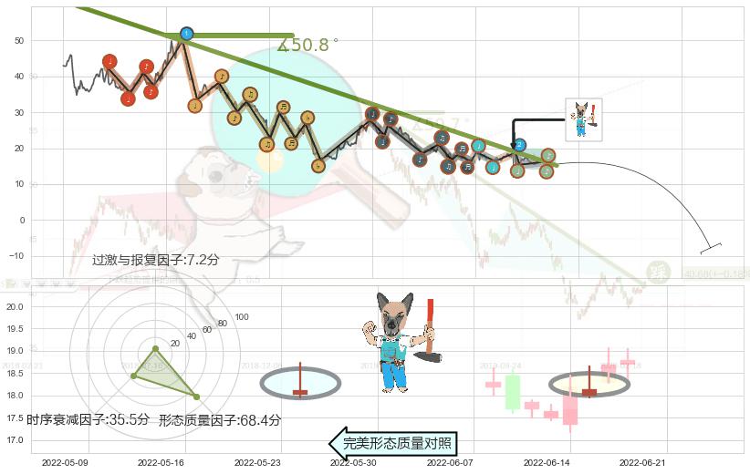 从2021-11-16至2022-04-19,共包含103个交易日,阶段股价下跌-39.24%,阶段股价变动位移路程比: 1 : 5,下跌趋势角度: 60.9
