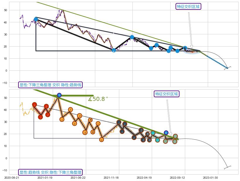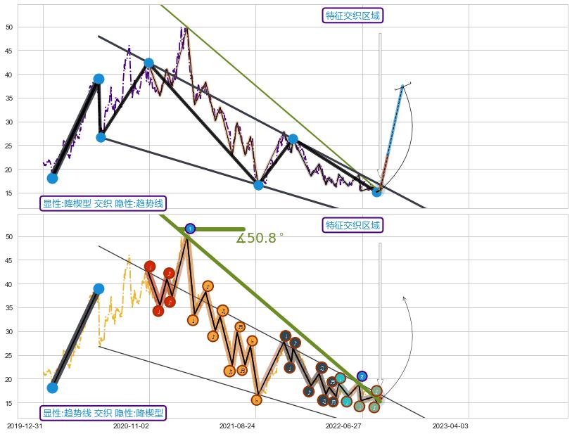 ➢ 降楔型与趋势线信号事件周期长度级别相同,同周期信号事件