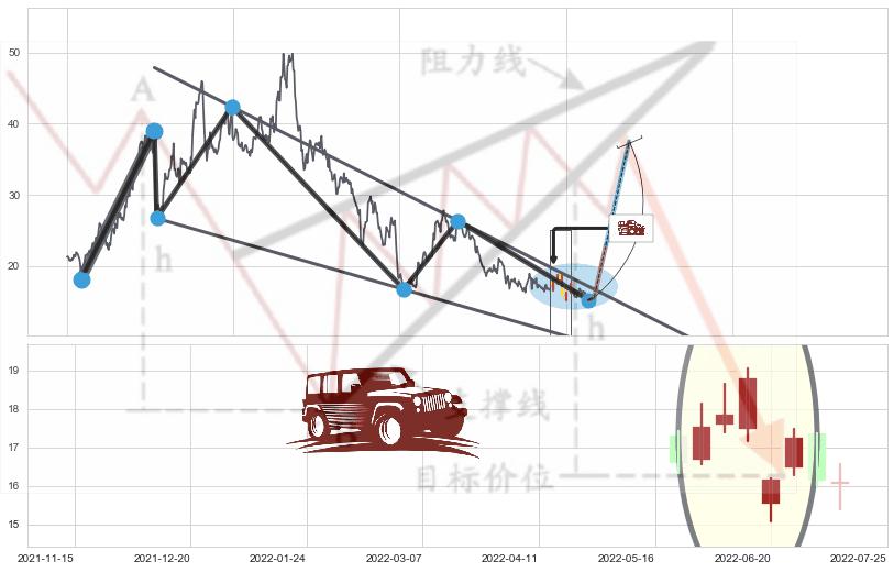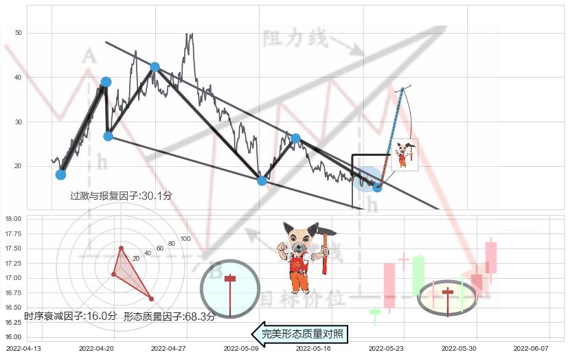 ➢ 收盘价(2022-05-23: 17.32 )→回踩→第一根k线低点(2022-05-18: 16.58 )