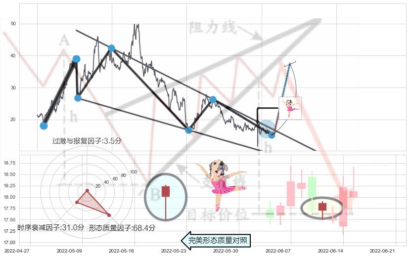 ➢ 【卖1】: 激进型 卖点→(2022-06-20: 16.25 )形成突破下降三角形整理【整理】形态