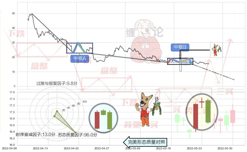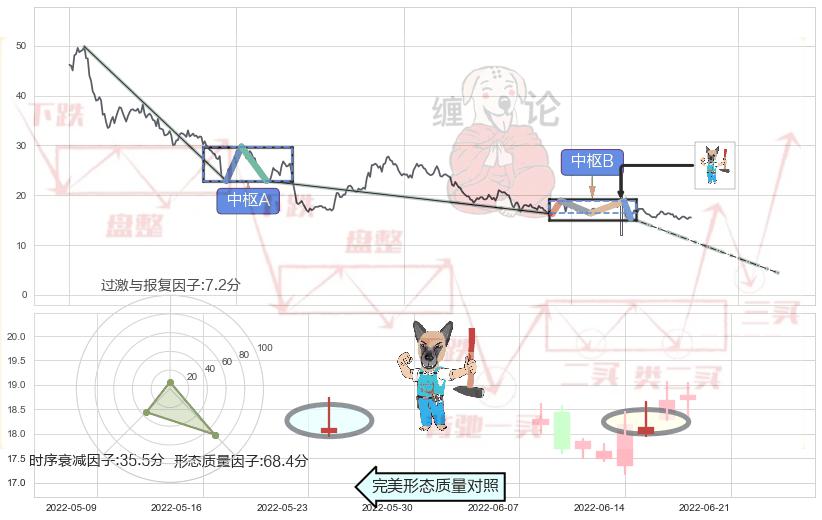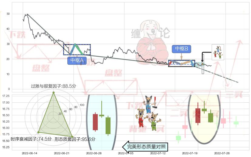 ➢ 【中枢B】:2022-04-13-2022-06-23,中枢由5笔构成,共48交易日, ZG=18.80, ZD=16.38