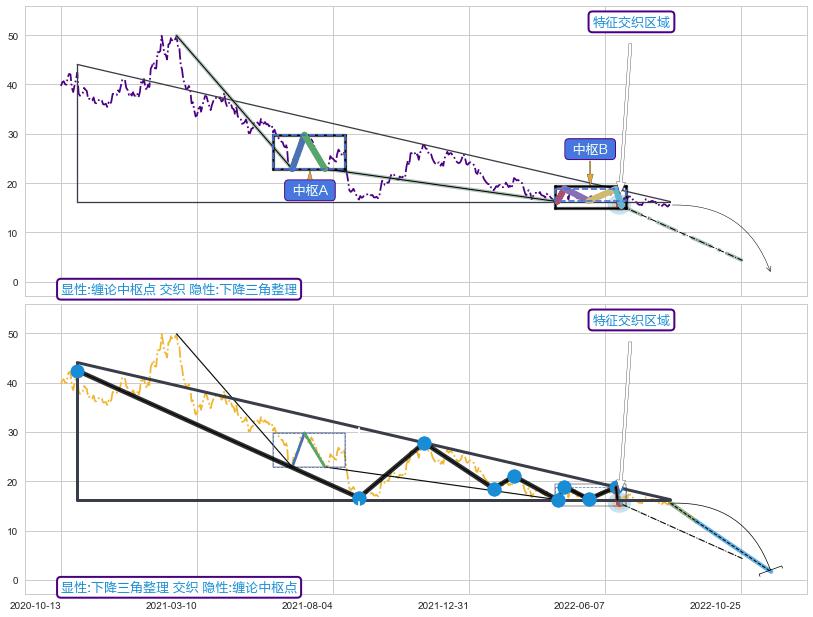 ➢ 缠论中枢点与下降三角整理信号事件周期长度级别相同,同周期信号事件