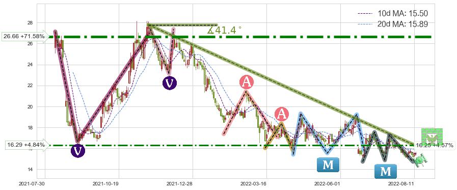 ♘ 阻力价格位16.29,可信任强度65.89%,距离最后交易2022-08-12形成的收盘价格15.54相差 +4.84%