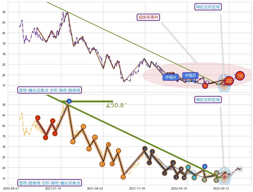 ➣ 缠论买卖点:下降缠:猜想2买趋势延续,蓄力上涨至3买(大周期趋势均值回复中的小周期趋势跟踪)