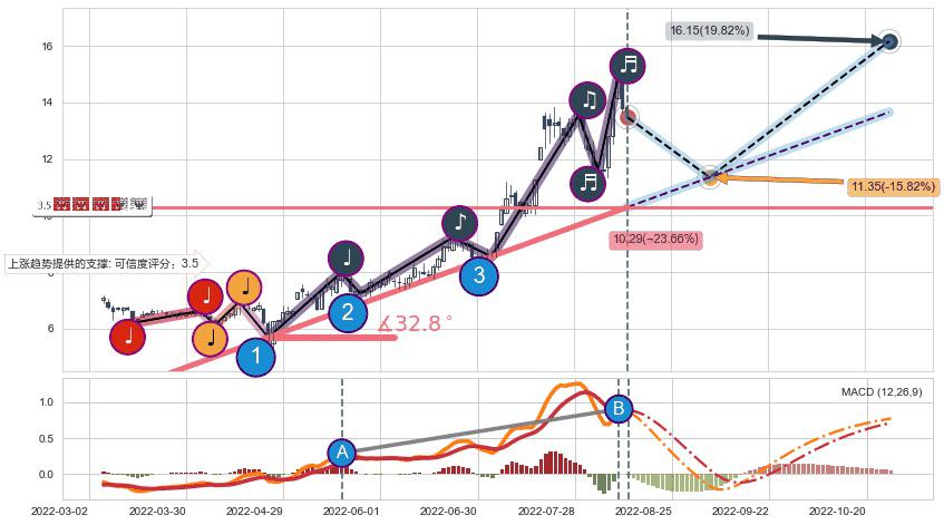 ➣ 预测:2022-10-27,【继续上扬】稳定目前上涨趋势的前提下,预测价格:16.15
