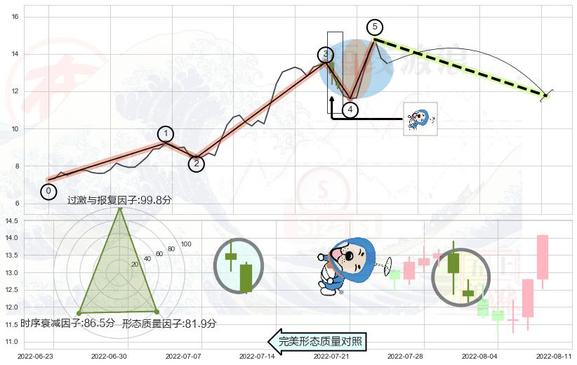 ➢ 🕰 价格走势在2022-07-25至2022-08-01期间形成吊颈线(上吊线),残存影响值:-4.65