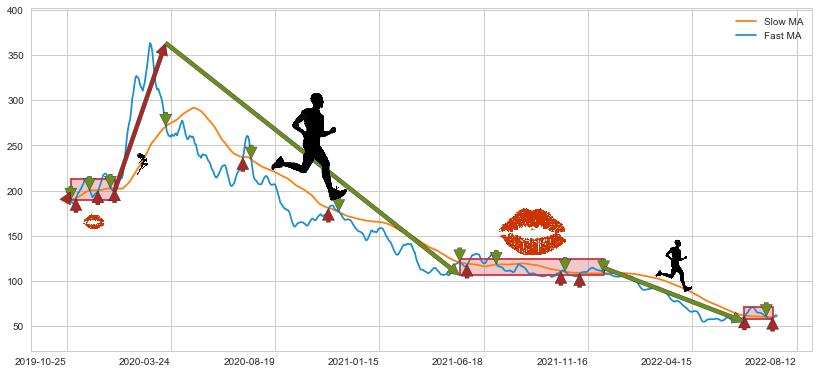 2021-12-07至2022-06-30 慢线与快线呈空头排列, 慢线与快线接触少,无缠绕