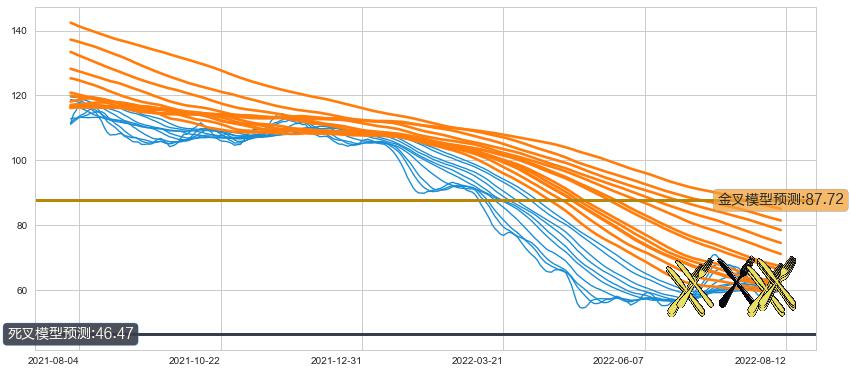 ➣ 34小时均线于(2022-07-21: 62.04)形成【死叉】基于【死叉历史模型】预测死叉后最低波谷价格: 46.48, 死叉后最低价格55.75,尚未达到预测最低波谷价格, 预期继续下跌