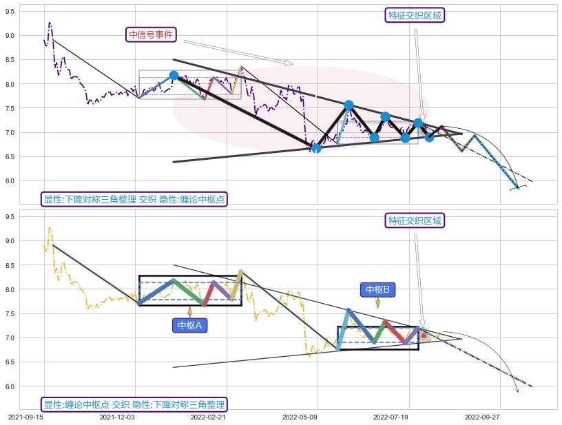 ➢ 下降对称三角整理属【中级别信号事件】缠论中枢点属【长级别信号事件】中长周期组合信号事件,中长事件长度比65.89%