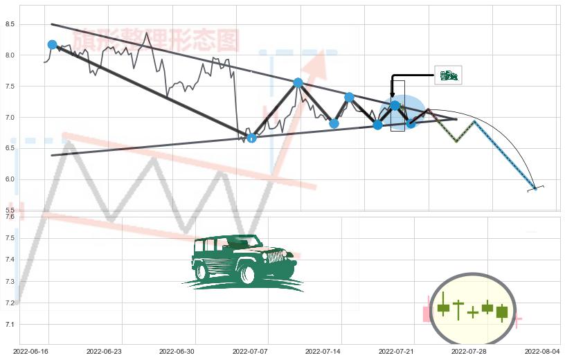 ➣ D点拟合预测价格7.47,距离最后交易收盘价格7.12相差 +4.94%