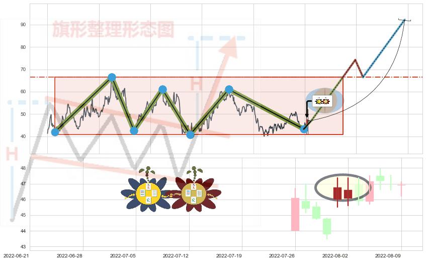 ➢ 🕰 价格走势在2022-08-01至2022-08-02期间形成高位并排阳线,残存影响值:9.37