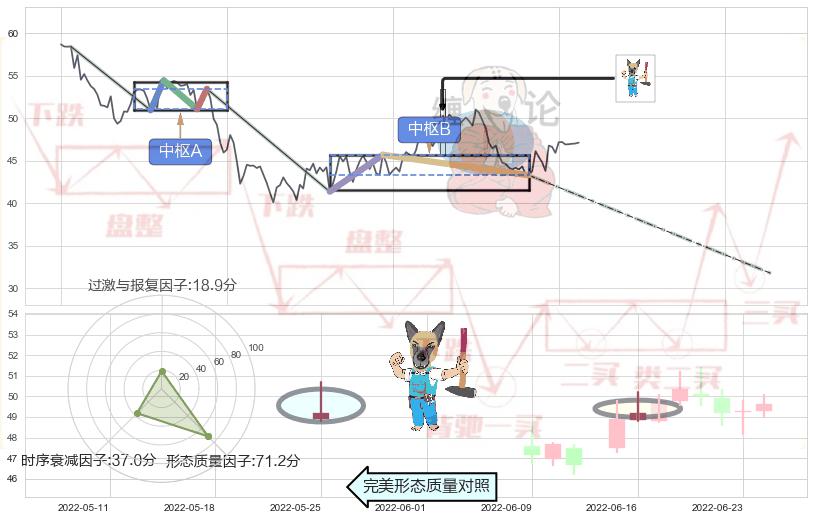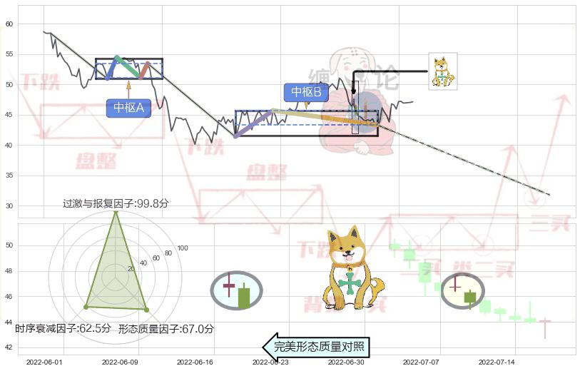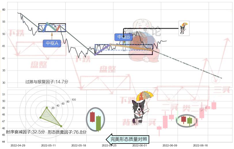 ➢ 看跌(高位倒锤头)流星线 🔜 缠论中枢点破位中枢B支撑下拉 综合量化分数:47.18 【中性】