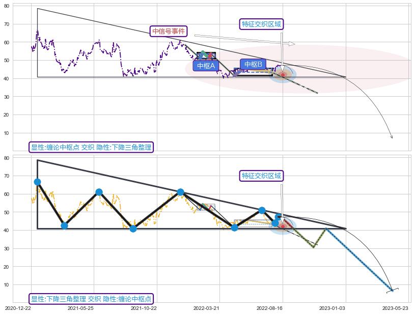 ➢ 缠论中枢点属【中级别信号事件】下降三角整理属【长级别信号事件】中长周期组合信号事件,中长事件长度比39.59%