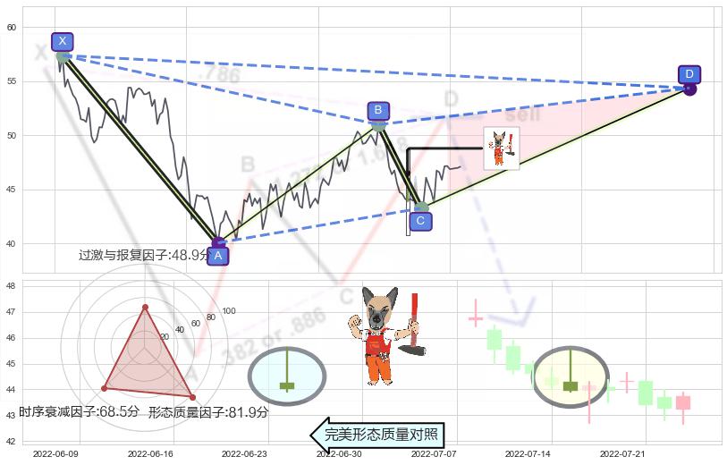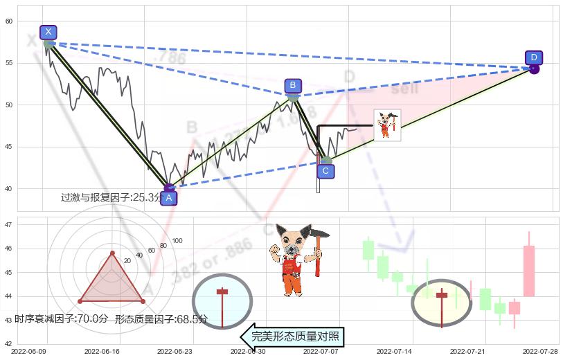 ➣ D点拟合预测价格54.38,距离最后交易收盘价格47.11相差 +15.42%
