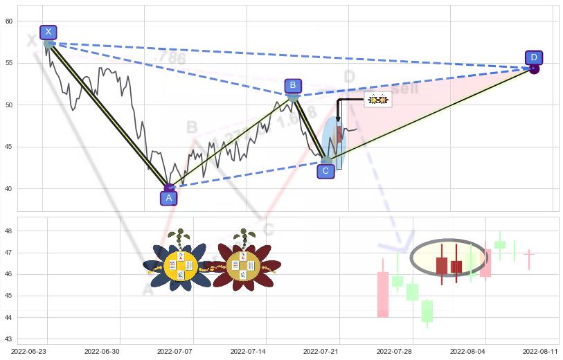 ➣ 未完成【伽利】形态起点X: 2021-12-28, 已到达C点: 2022-07-22, 预测最终D点: 2022-12-13, 共234交易日