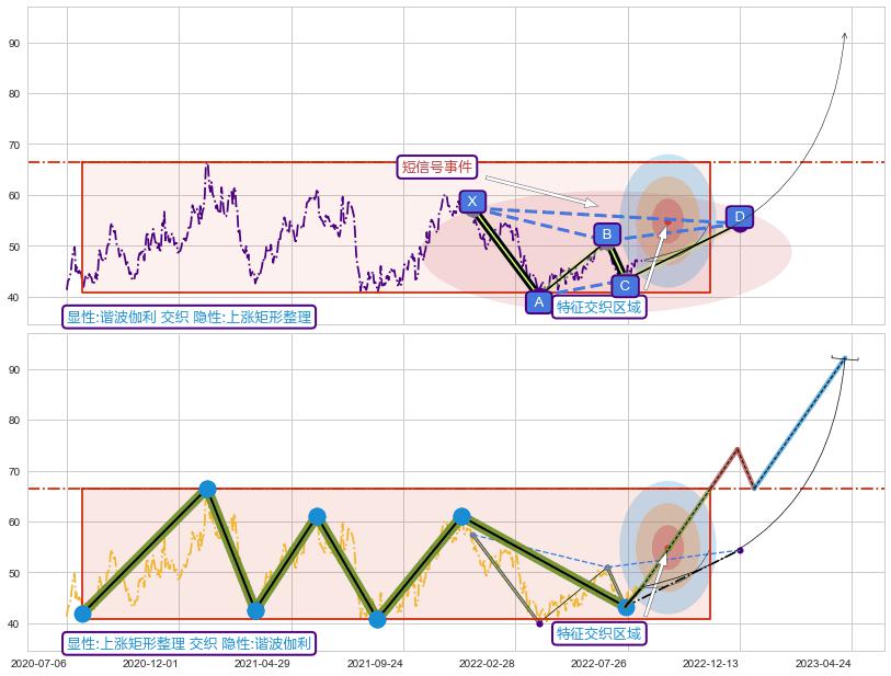 ➢ 谐波伽利属【短级别信号事件】上涨矩形整理属【长级别信号事件】长短周期组合信号事件, 短长事件长度比30.40%
