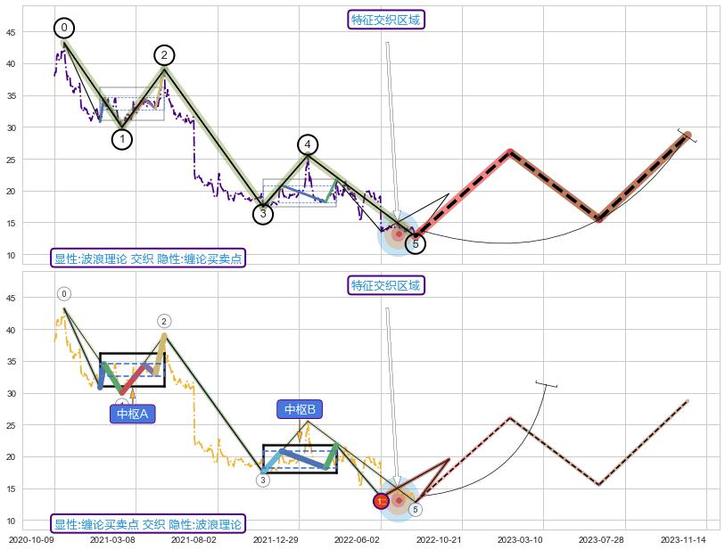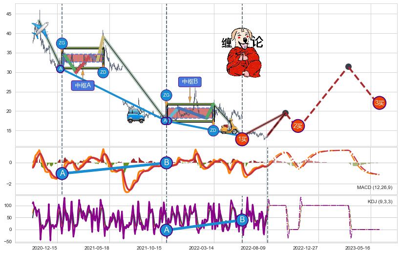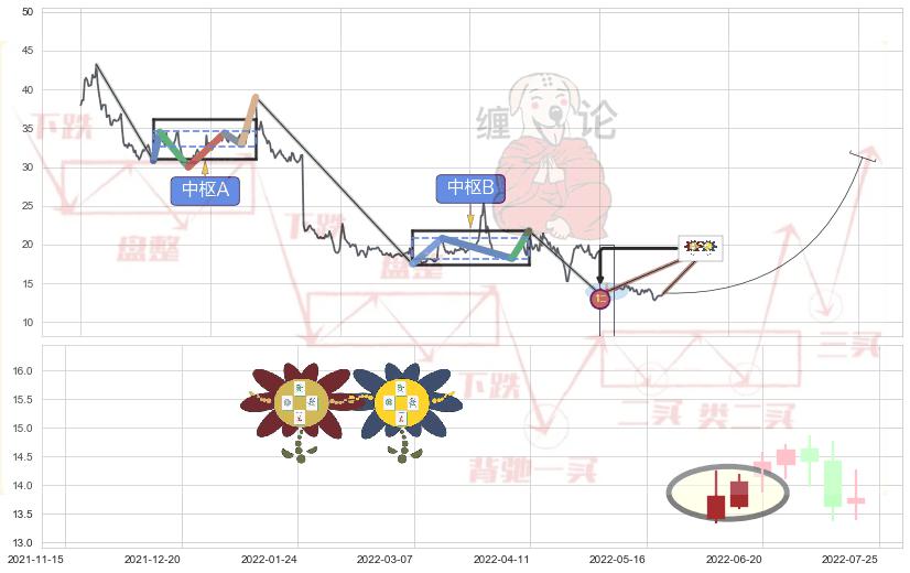 ➣ 缠论买卖点:下降缠中枢AB形成后猜想拐点1买已到达,猜想后续持续拉升(均值回复)