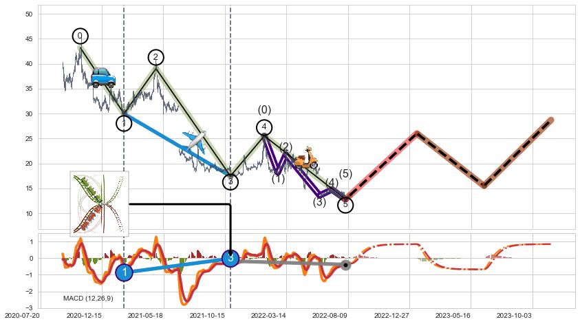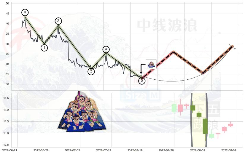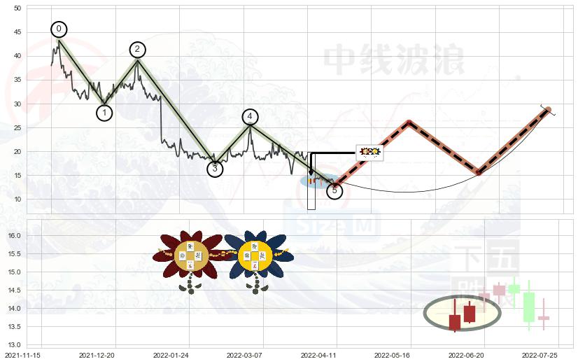 ➣ 波浪理论:猜想止跌 → 上涨 →【拐点】浪5已完成 → 大趋势均值回复