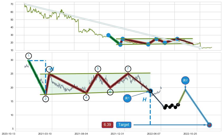 ➣ 最小中继整理跌幅→𝐇: 12.33 (𝐇旗杆的长度:旗杆起点→顶点)