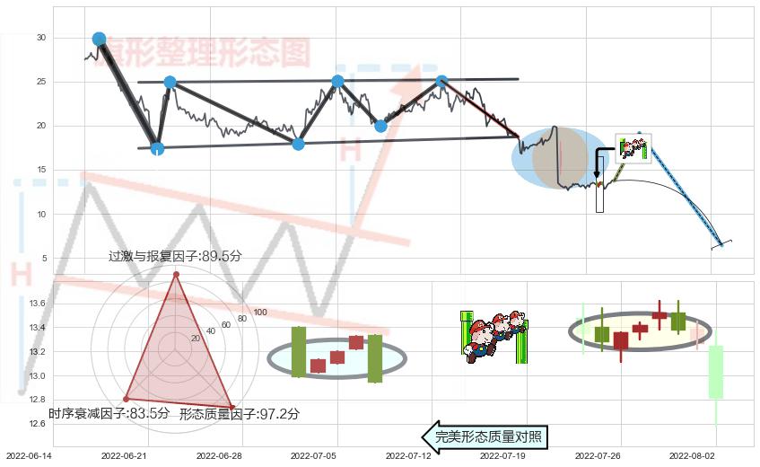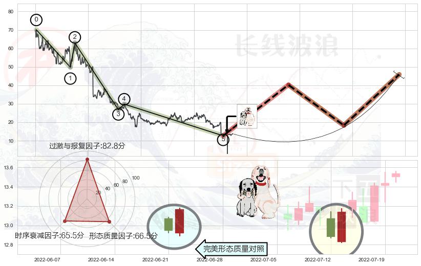 ➢ 🕰 价格走势在2022-07-18至2022-07-25期间形成顶部尽头线(下山虎),残存影响值:-4.91