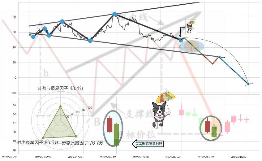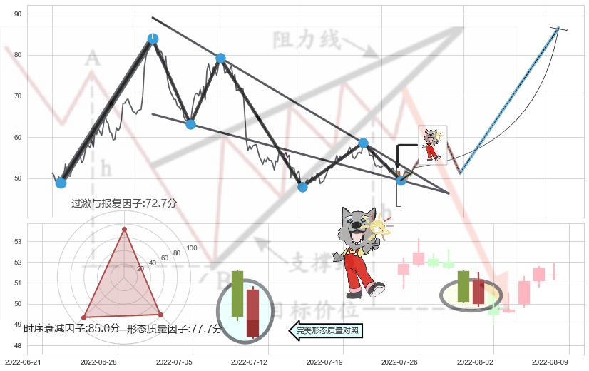 ➢ 【买1】: 激进型 买点 →(2022-08-11: 51.48 )形成突破降🚩楔型【整理】形态