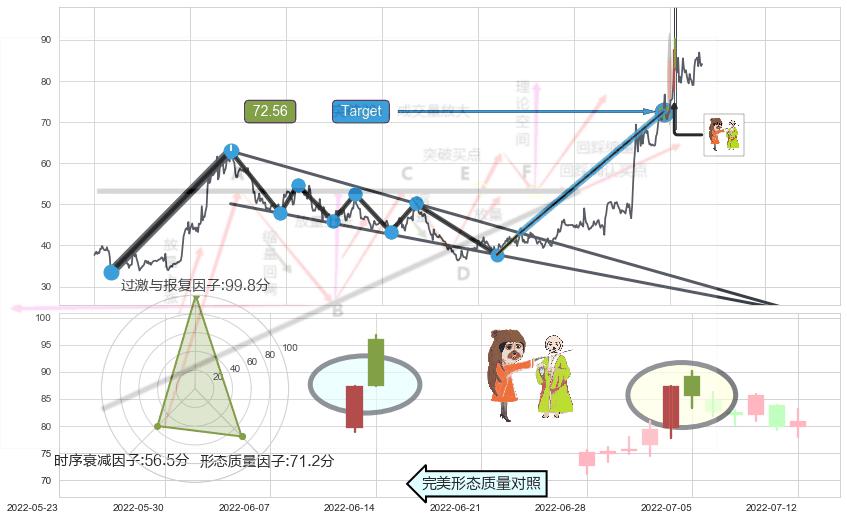 ➣ 【未确认突破,预测即将形成突破】上升三角形整理起点:2022-04-26, 预测突破点:2022-08-16,形态共77交易日