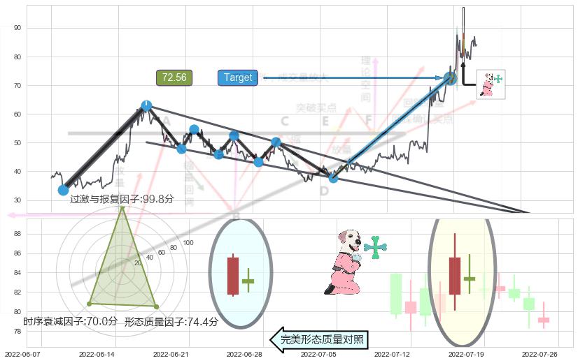 ➢ 🕰 价格走势在2022-07-11至2022-07-13期间形成两黑夹一红,残存影响值:-3.62