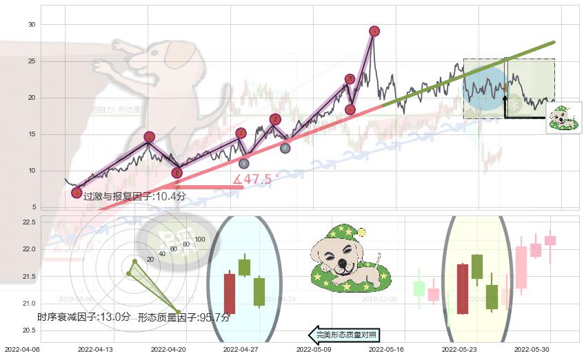 ➢ 🕰 价格走势在2022-05-20至2022-05-24期间形成黄昏之星(夜星),残存影响值:-2.31